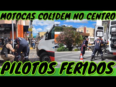 Motocas col1dem no centro, pilotos fer1dos